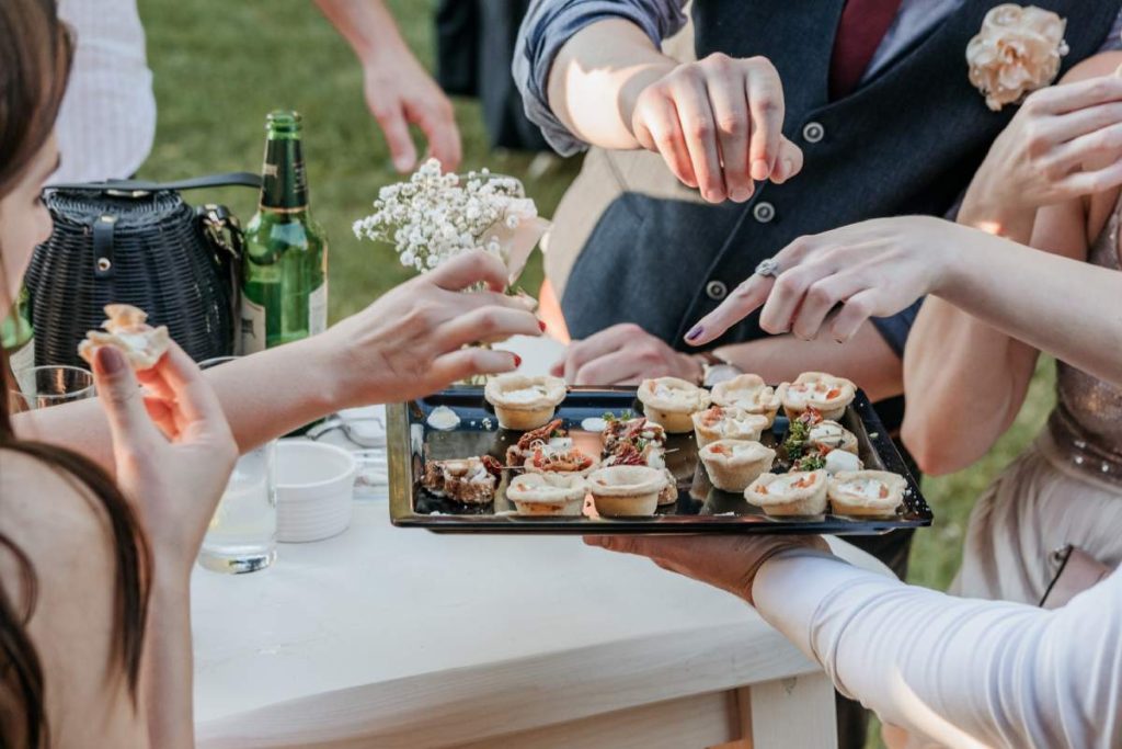 - Service: Providing staff to serve food and drinks to your guests, whether it’s a sit-down meal, buffet, or cocktail service.